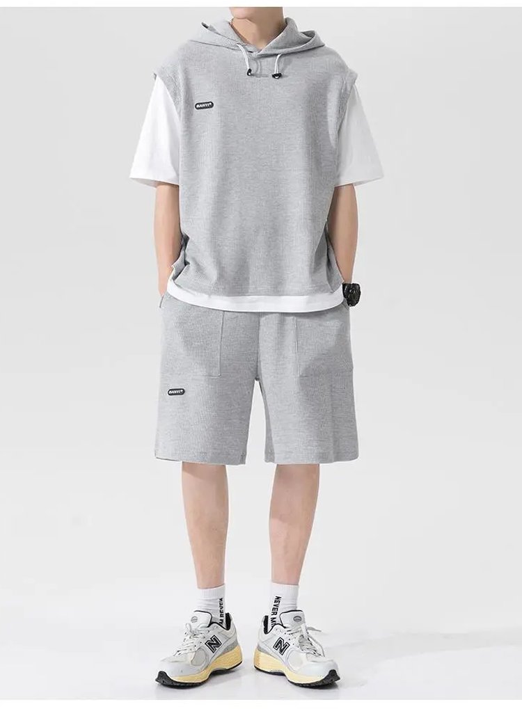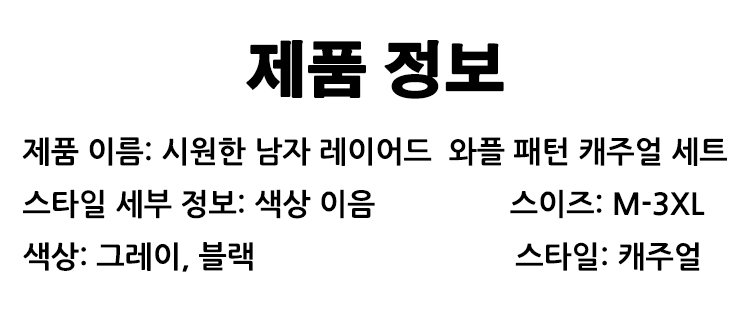 시원한 남자 레이어드 와플 패턴 캐주얼 세트